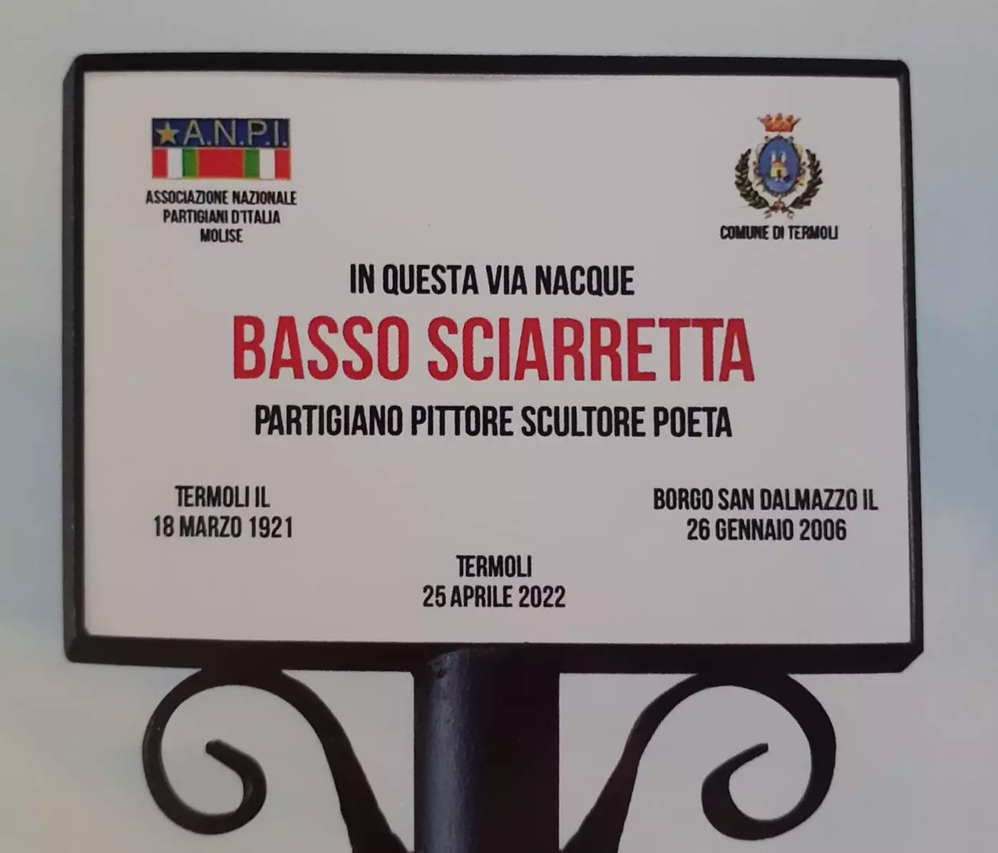 «Siamo grati alla sindaca Roberta Robbione e all'assessora alla Cultura Michela Galvagno, nonché a tutta l'Amministrazione comunale, per aver accolto il nostro desiderio di installare la scultura vicino a MEMO4345 - commentano i familiari -. Un luogo sacro dove il silenzio ha una gran voce, forte, un urlo quasi, da ascoltare con rispetto. E in questa 'assordante intimità' ben si esprime l'anelito al libero volare: si preannuncia la nascita del volo, simbolo di Libertà, in antitesi alle testimonianze delle atrocità della guerra. La protoforma, oltre a ricordare nostro padre come partigiano Walter, rende omaggio a suo zio, Gennaro Sciarretta, che a soli 51 anni fu massacrato dai nazisti nell'agosto 1944: l'atroce supplizio a cui è stato sottoposto con i suoi compagni prima della morte nell'eccidio nazista di San Terenzio Monti. Entrambi saranno ricordati il 25 Aprile a Termoli dall'Anpi Molise».